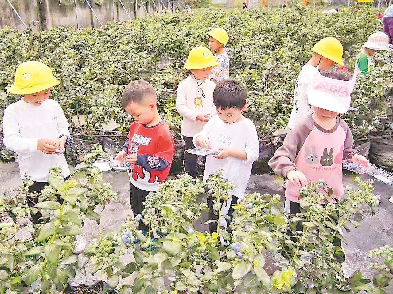 位于鸥涌村的蓝莓星球占地160亩,目前投产的120亩蓝莓长势喜人,每亩产量约1000斤,总产量预计能突破10万斤。利用大批量种植出来的蓝莓,还可以制作蓝莓果干、果酱和果汁等副产品,延伸蓝莓种植产业链。据悉,每当采摘旺季,这里将提供80个就业岗位,优先聘用当地农户让他们实现家门口就业。与此同时,该地坚持多元销售渠道齐头并进,从田间直供市场的鲜果,到电商平台的冷链配送,再到现场采摘的沉浸式体验,构建起“农旅融合”的立体营销网络,展现出乡村振兴的鲜活样本。接下来,该种植园还将持续完善园区内各项设施设备,打造一个集种植、采摘、加工、旅游于一体的综合性田园体验地,让游客能在果香中感受当地独有的田园诗意。