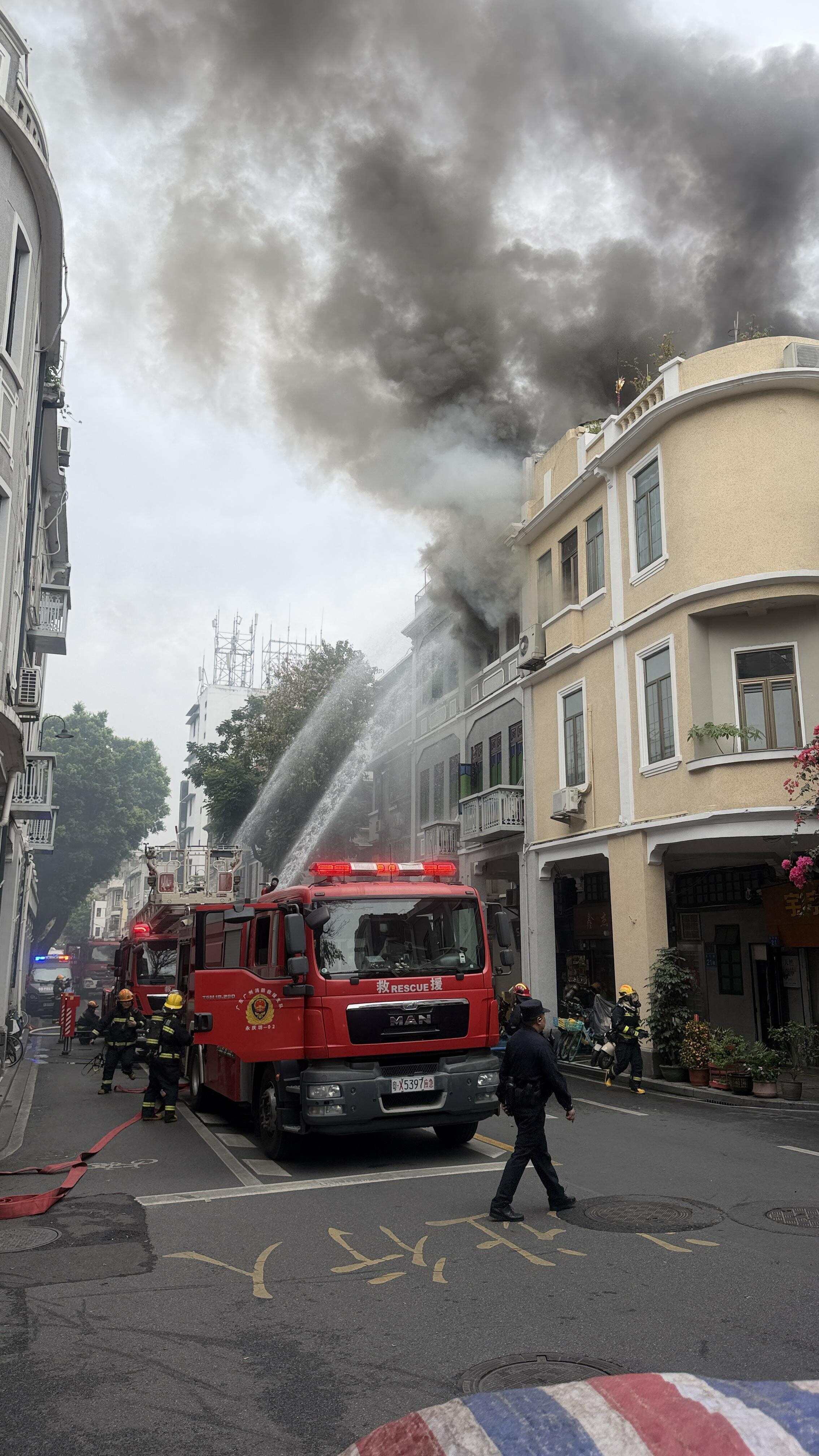梁先生说:“火情大约发生在13时20分,目前路边停留了多台消防车,消防人员正在救援中。有警察在现场维持秩序。有一辆救护车停留。”