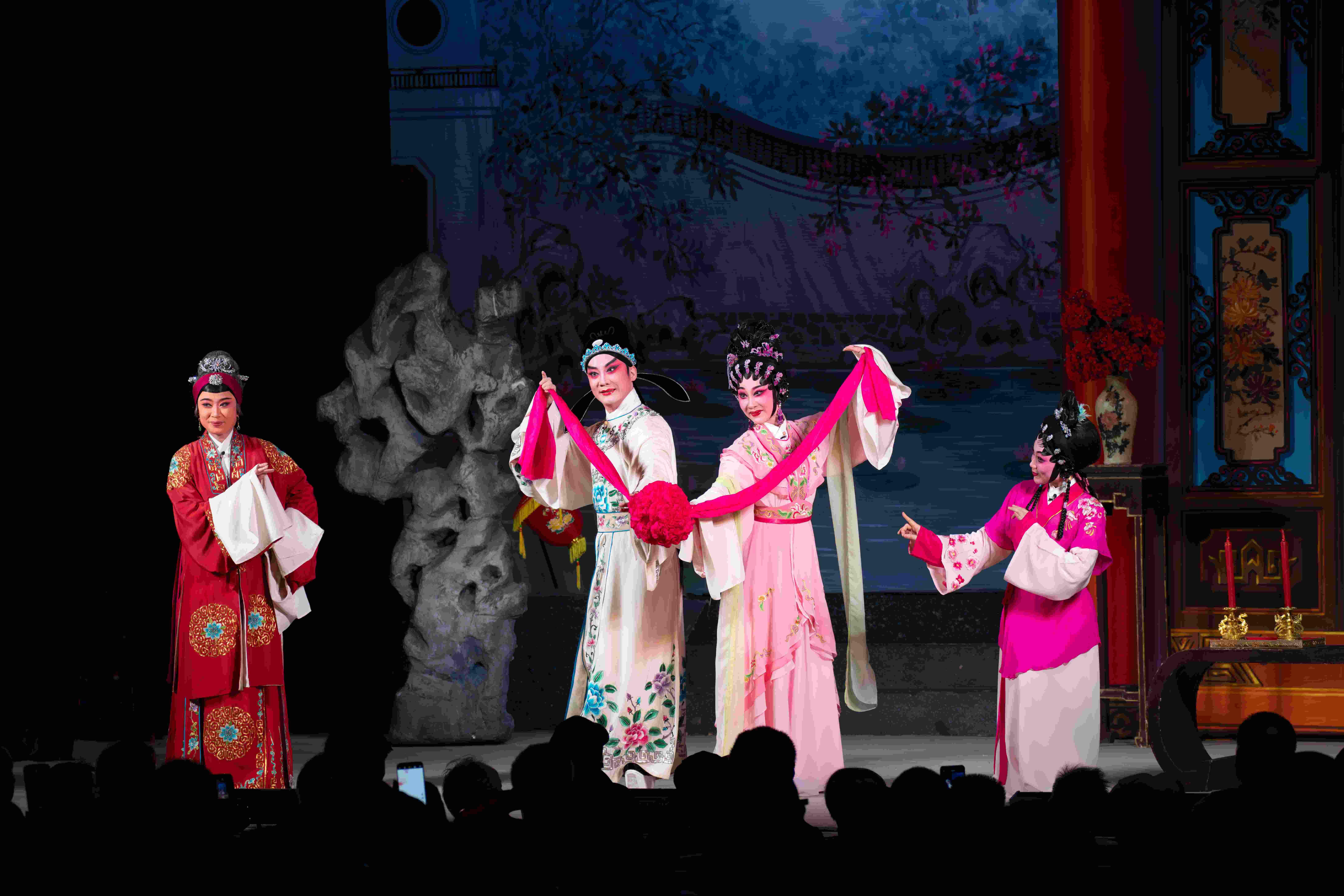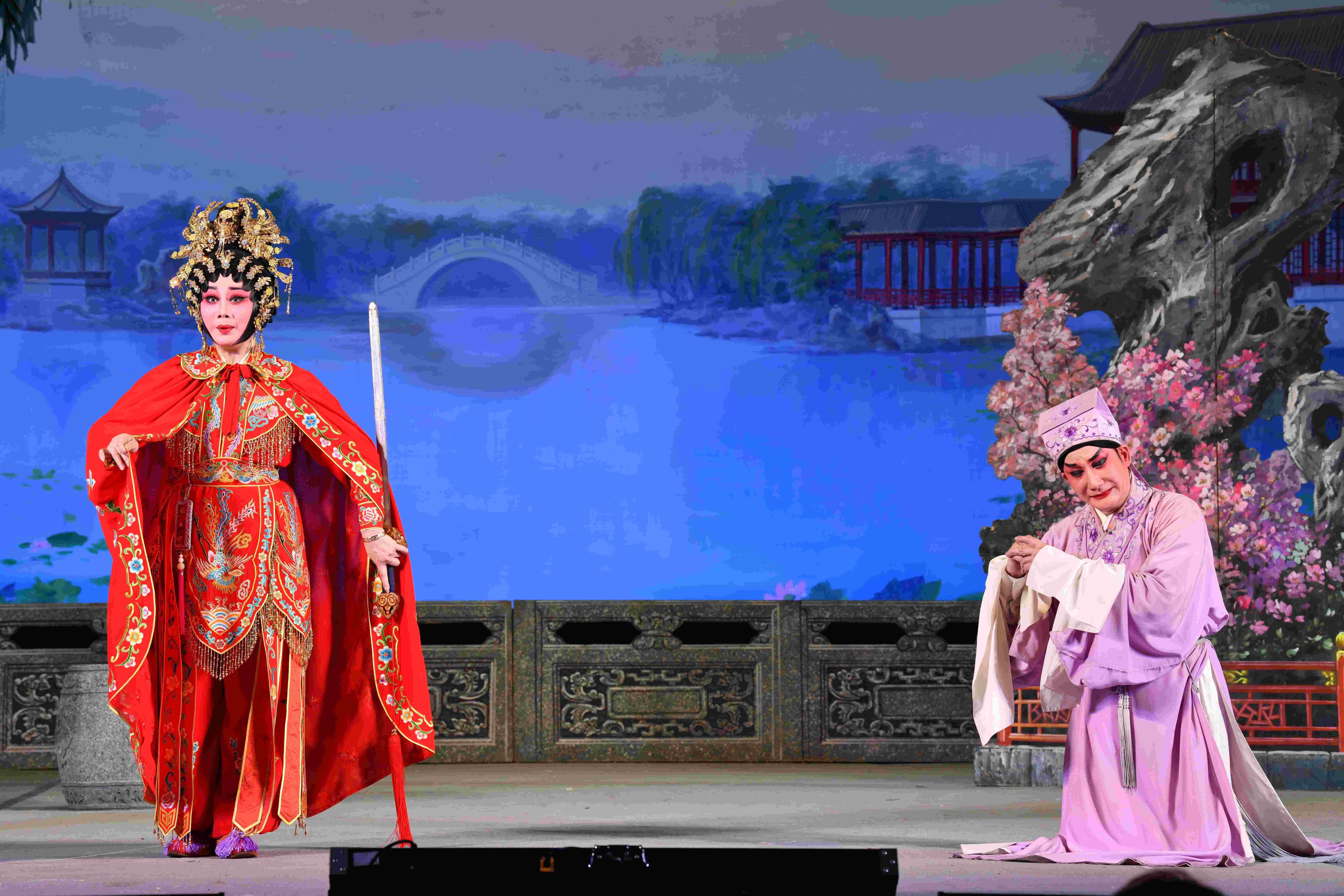 台上,一级演员、中国戏剧梅花奖得主、广州红豆粤剧团团长李嘉宜与一级演员李伟骢联袂主演《紫钗记》。这是他们作为新搭档首次在春班亮相,二人配合默契,唱念做表一丝不苟。