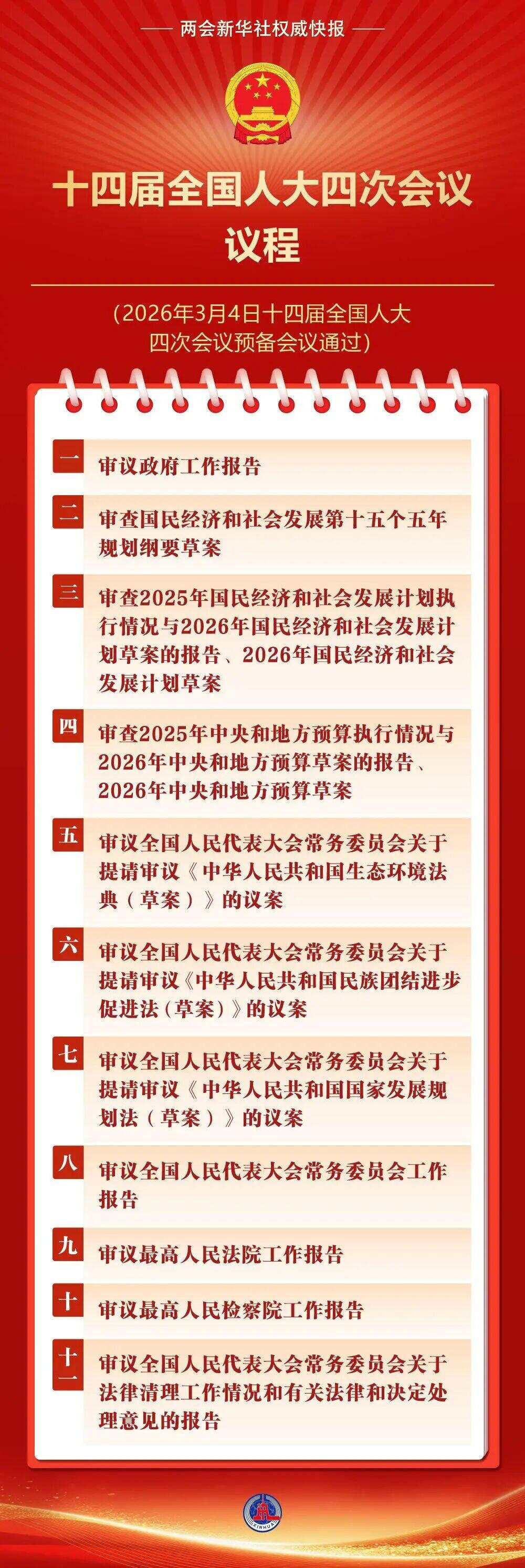 十四届全国人大四次会议议程定了