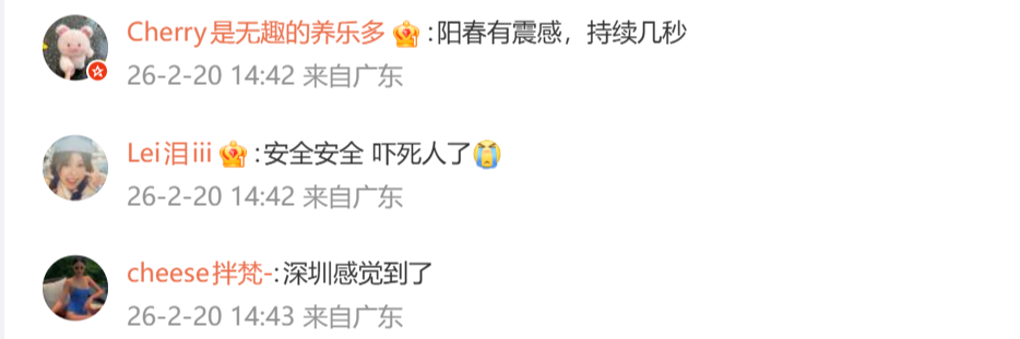 记者从社交媒体看到,阳江、深圳、东莞、广州等地的网友,均反映感觉到地震发生。从网友反映的情况看,有网友反映自己所在的建筑物有轻微摇晃的现场,也有网友反映在家中感受到震动时“从沙发上坐起来”。从网友反映的情况看,暂未出现有明显的因地震而损毁的情况发生。