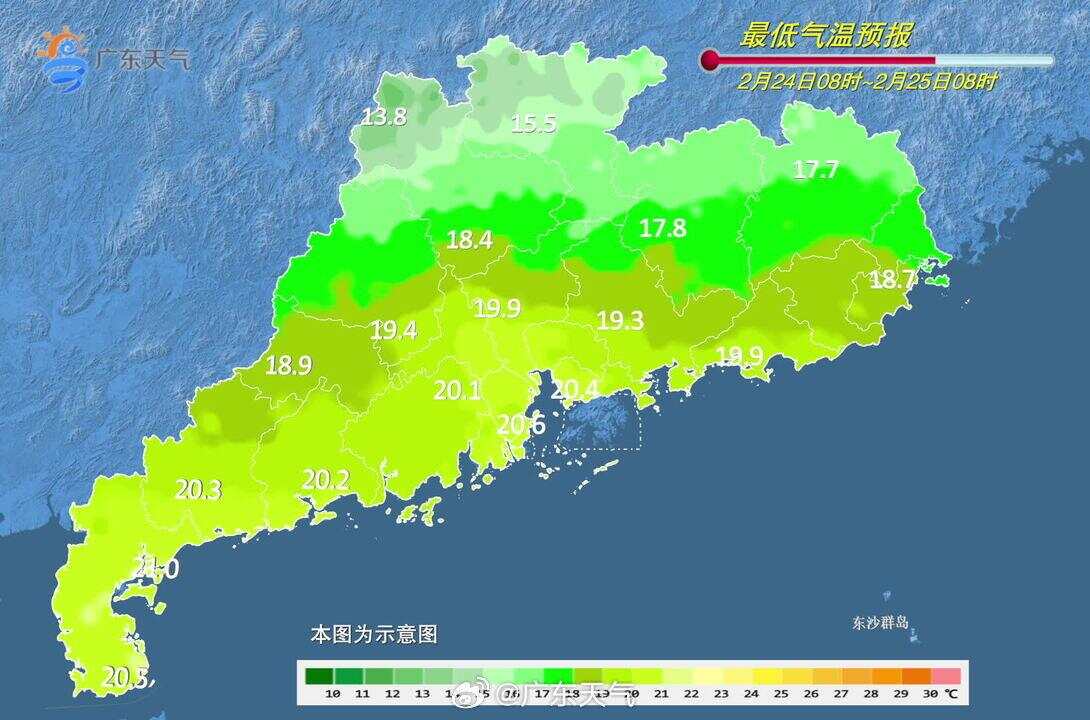 24日(初八),粤北市县阴天有小雨,珠三角北部和粤东市县多云间阴天有分散性零星小雨,其余市县多云,大部市县早晚有(轻)雾。