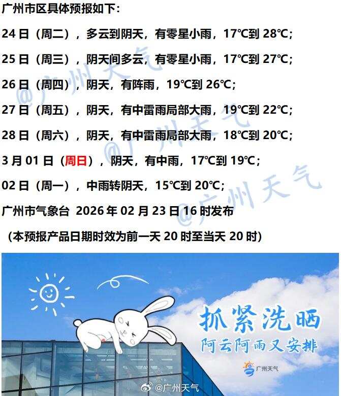 广州天气具体预报: