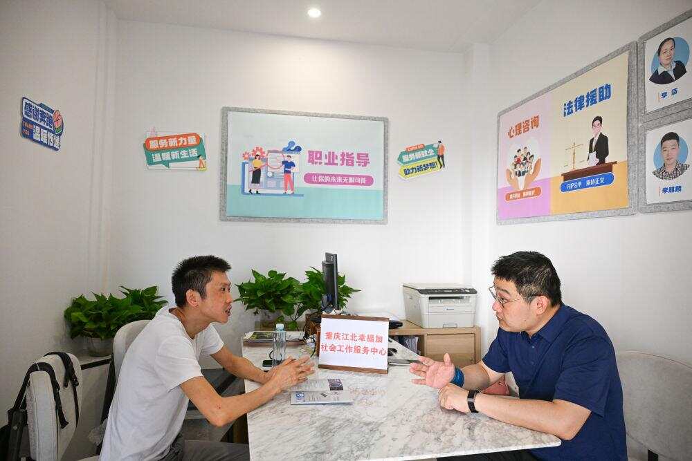 2025年5月20日,一名网约车司机在重庆市江北区新就业群体党群服务中心接受心理咨询服务。近年来,重庆市江北区委社会工作部联合多个部门和企事业单位,打造新就业群体党群服务中心,为新就业群体提供休憩、心理咨询、法律援助等服务。