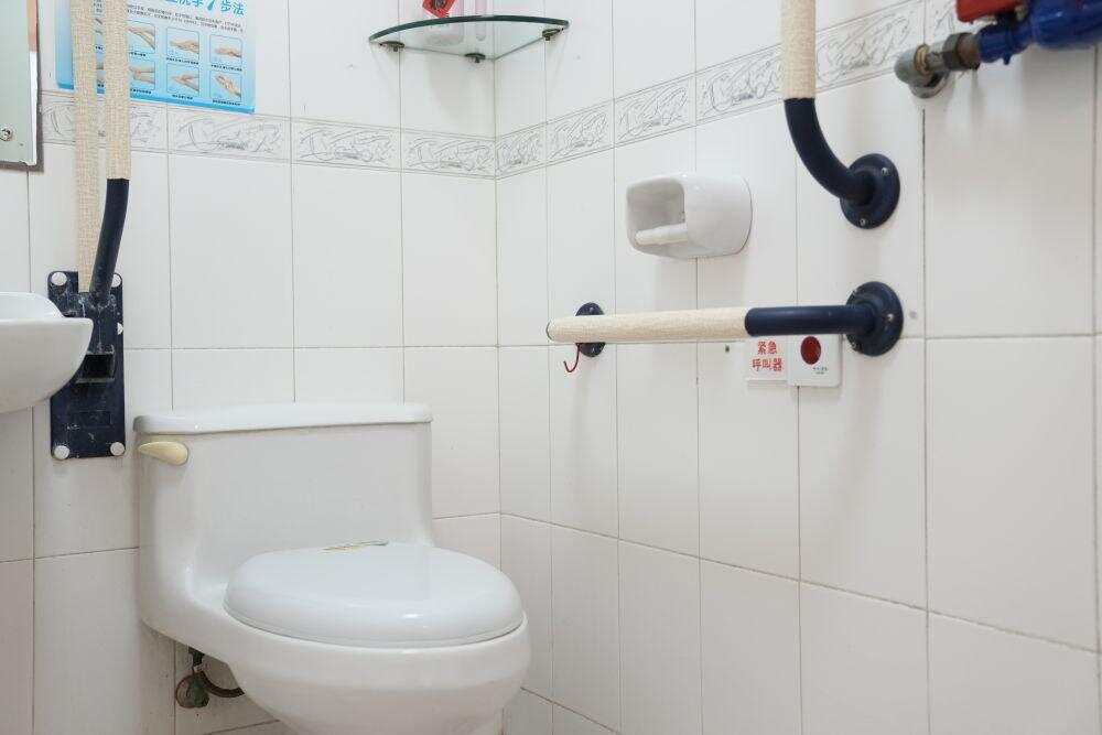 2月10日拍摄的银龄老年公寓适老化改造后洗手间。