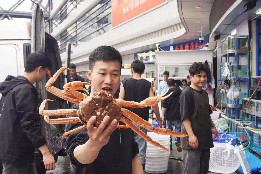 不远处,泰然水产的水缸里摆满来自俄罗斯、挪威的帝王蟹。“为了冲刺春节,提前备货一两万斤。”负责人陈宏雄告诉记者,目前帝王蟹售价约每斤220元,临近春节日均出货量可达1000至2000斤,通过空运发往全国多地。