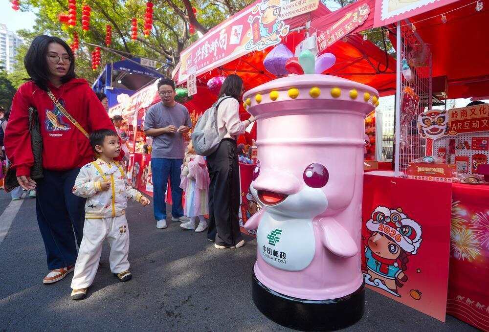 记者从摊位处的广州邮政相关负责人获悉,新春期间广州每个迎春花市都将设置一只“大湾鸡筒”。除了迎春花市,广州部分区街也试点将传统邮筒替换为“大湾鸡筒”。从设置情况看,公众反响不错,不少市民拍摄“大湾鸡筒”并上传社交媒体。