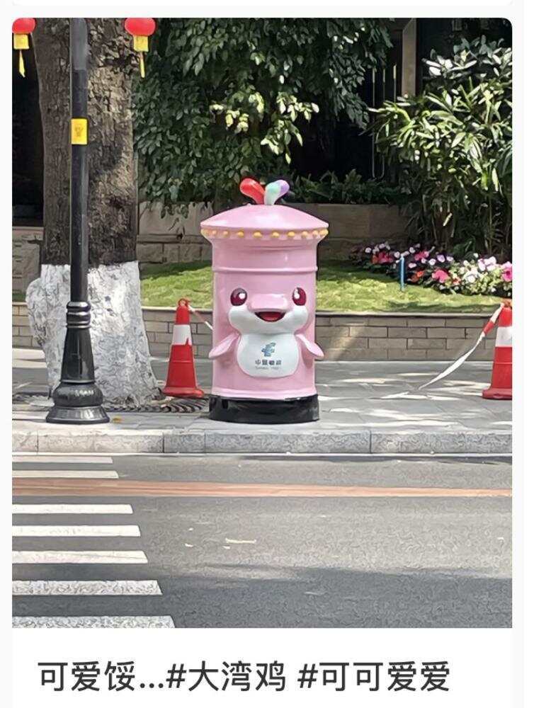 您有多久没有写信了?造型可爱的邮筒,会不会激发您的写信欲望?不少广州市民发现,广州街头近日出现以十五运会和残特奥会吉祥物“喜洋洋”“乐融融”(俗称“大湾鸡”)为造型的邮筒,因外形可爱引得网友赐名“大湾鸡筒”。