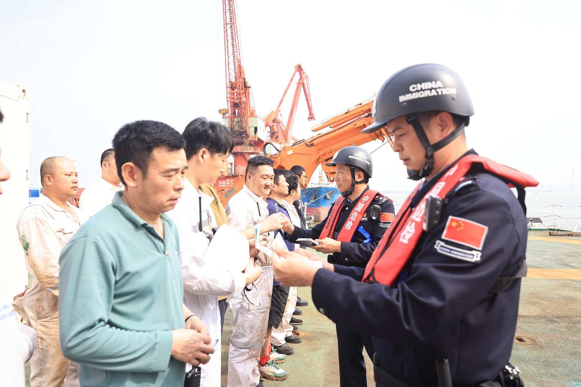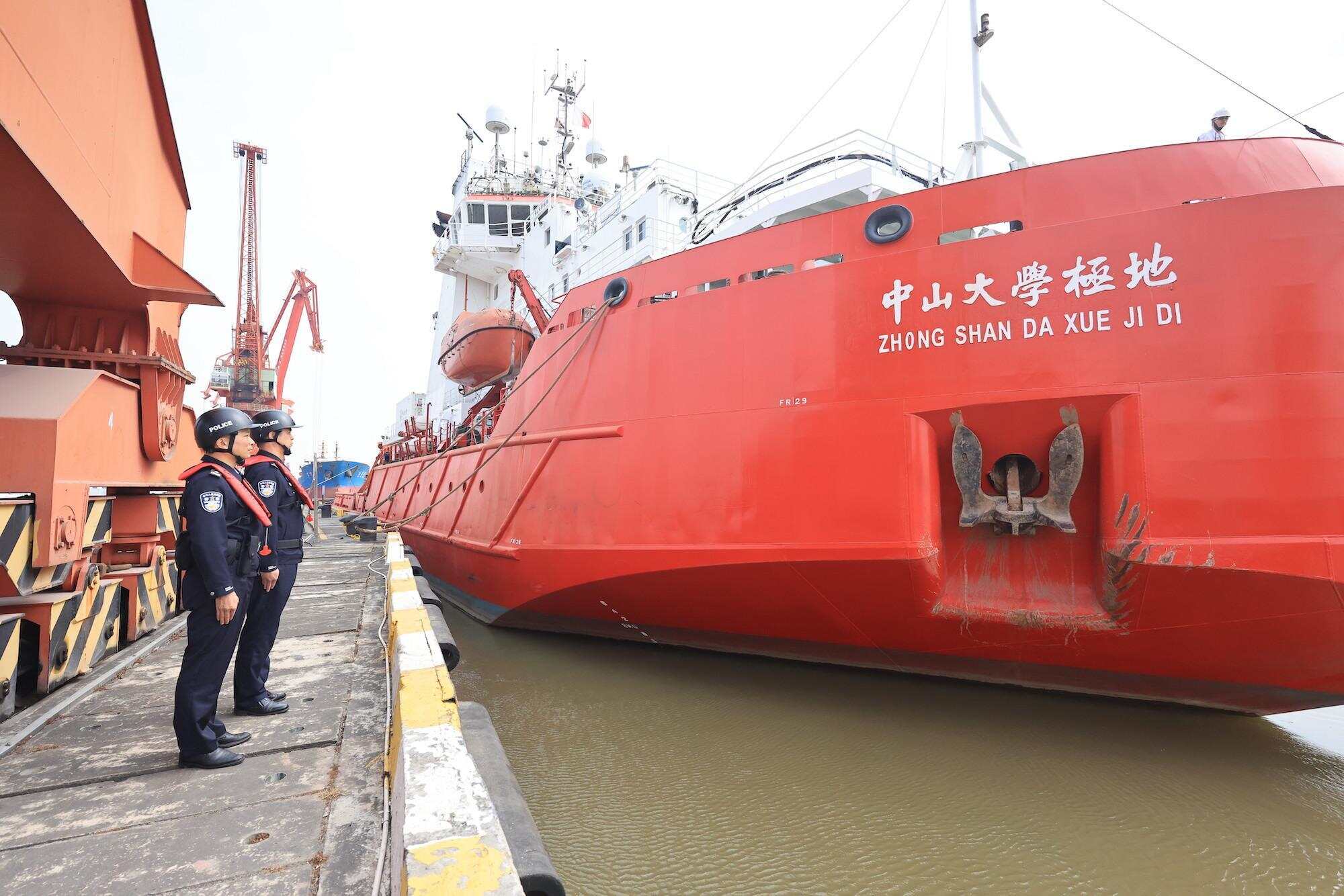 “接到船情通报后,我们提前部署策划,将边检窗口前移,抽调业务骨干组成专项勤务小组,快速高效地为该船及船员办理入港换班边防检查手续,助力‘中山大学极地’号科考船顺利通关。”江门边检站执勤一队队长陈湘鄂说。