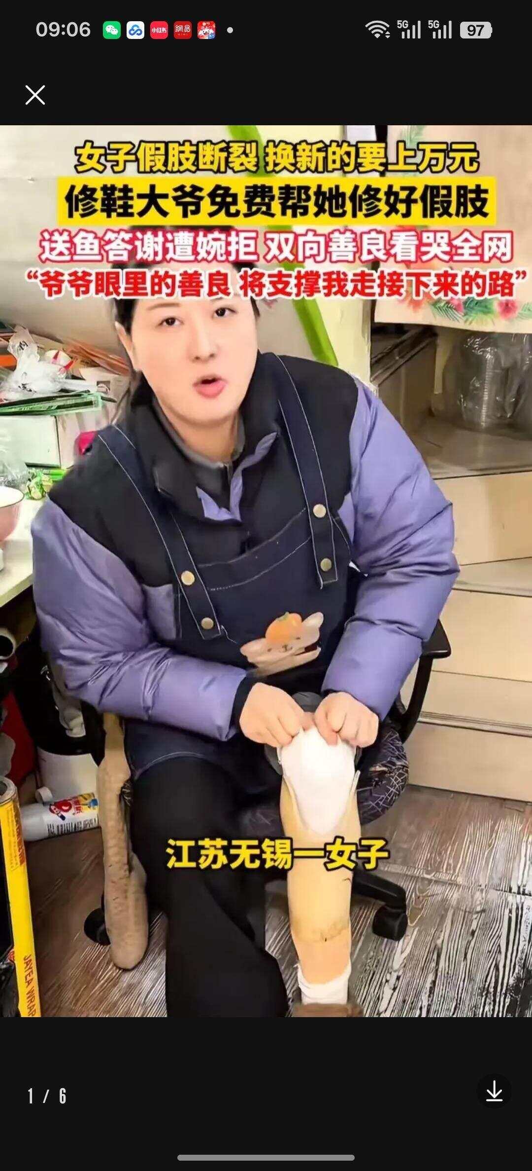 2月3日,无锡新吴区梅村老街便民修鞋点,一位残障女子因假肢断裂,无力承担万元更换费用,向修鞋摊求助。从业多年的修鞋大爷从未修过假肢,却出手相助、分文不取,女子送鱼答谢亦被婉拒。事件经当事人社交平台发布后,迅速引爆全网,多家媒体跟进报道,成为平凡人之间双向温暖、微光互相照亮的真实写照。