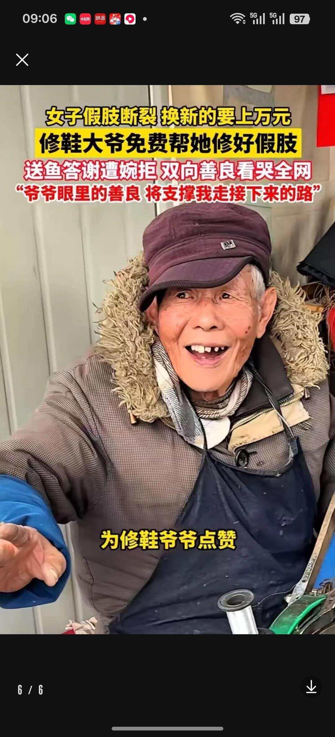 记者梳理网络舆论发现,网友对这一事件的评价以肯定、赞许与感动为主,观点多元且真挚:多数网友被这份朴素善意深深打动,直言“大爷修的是假肢,暖的是人心”,称赞这是市井烟火里最珍贵的善良,是普通人之间最真诚的守望相助;不少网友感慨双向奔赴的体面与温暖,为女子懂得感恩、大爷不求回报的互动动容,认为“不收费的善意,在当下格外珍贵”;有网友表示,心怀悲悯的大爷用一双粗糙的手托起他人的尊严,真正诠释了“平凡亦有高光”;还有网友为这份纯粹的善意动容,认为这一幕胜过许多说教,是最生动的社会温情课;更有网友由此关注残障人士辅具使用与保障问题,呼吁完善相关维修与救助机制,让更多人获得切实帮助。