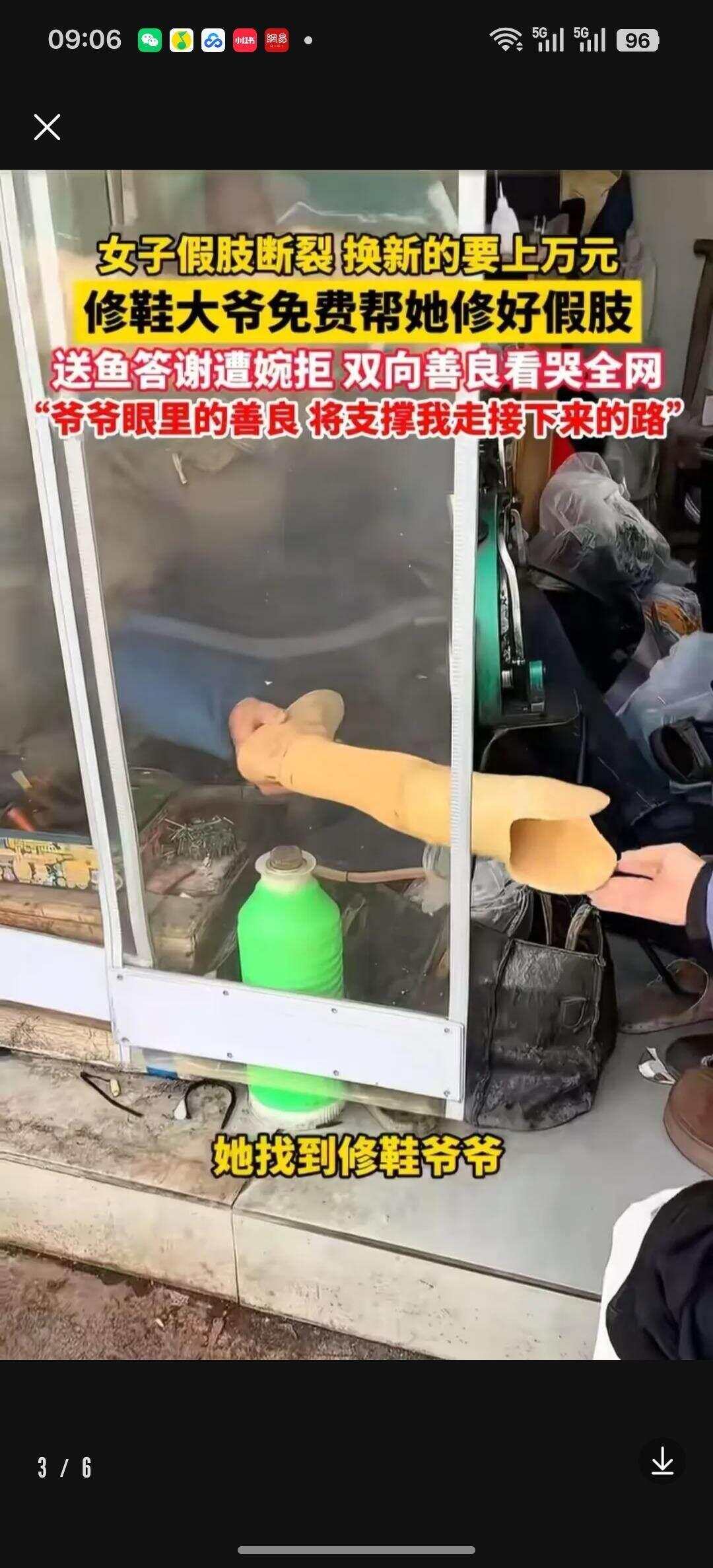 事发当日,一名残障女子拄拐来到修鞋摊,手中紧攥断裂的假肢,语气窘迫地求助:“大爷,您能帮我修一下吗?医生说换新要12000元,我实在拿不出。”
