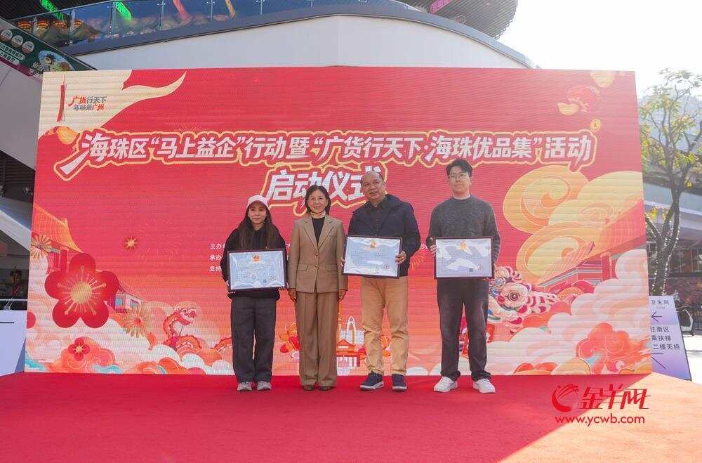 据悉,向新进驻商户现场颁证,有着政府部门“送服务上门”的寓意。在“广货行天下·海珠优品集”活动举办期间,广州市海珠区市场监管部门将通过“马上益企”行动,向企业提供从登记注册到许可审批的全程指引与优先服务,实现“企业零跑腿、办事加速度”。 通过“一网通办”“一窗受理”等行政审批优化流程,把服务送到企业商户门口,让企业商户专心把广货做强做精,专心经营。海珠区市场监管部门还会对多种广货,特别是近期热销的年货类商品开展专项抽检,严厉打击假冒伪劣、价格欺诈等行为,守护“海珠优品”品质与声誉。