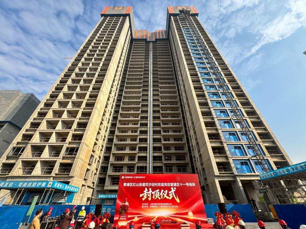 这一地块是双沙旧改项目复建区中规模最大、涉及户数最多的住宅地块,其封顶标志着项目回迁安置工程取得关键进展。