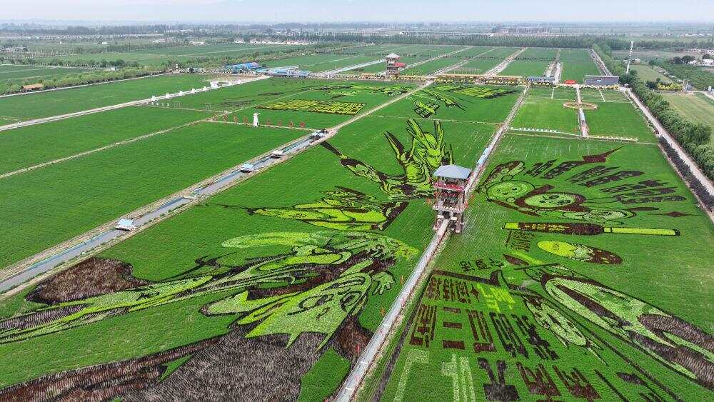 2025年6月18日,稻渔空间乡村生态观光园的巨幅稻田画(无人机照片)。新华社记者王鹏 摄