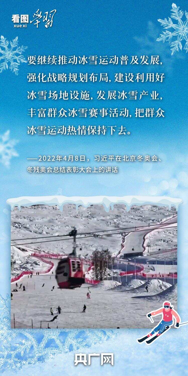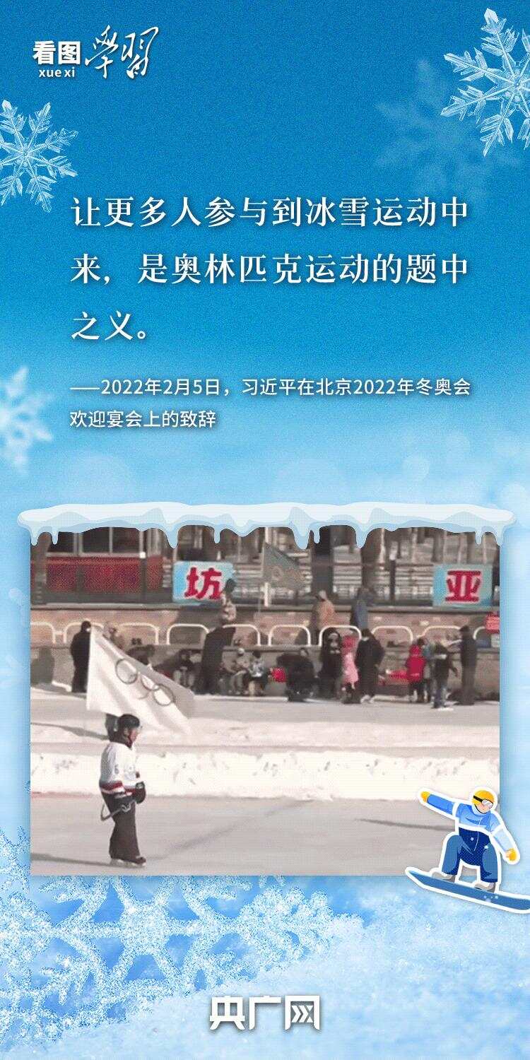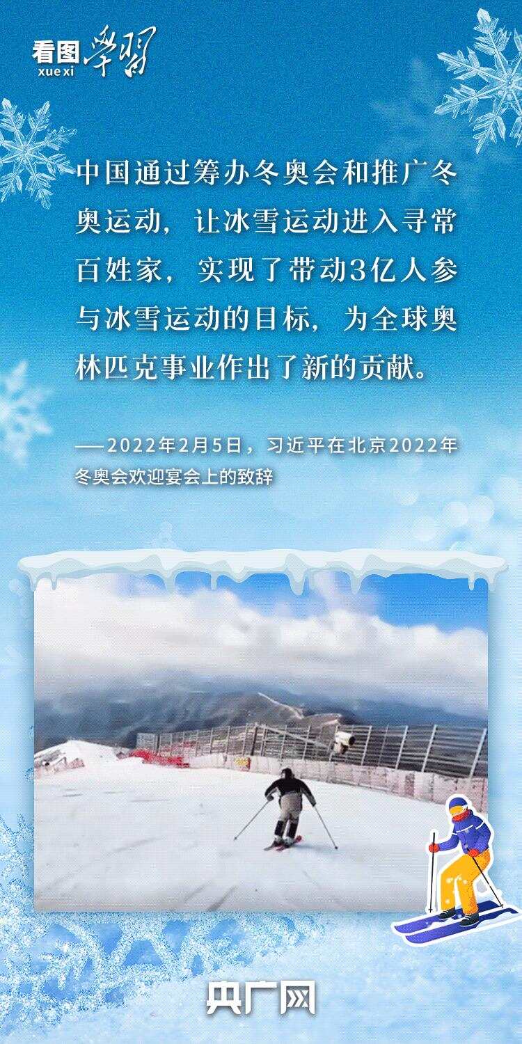 “让更多人参与到冰雪运动中来,是奥林匹克运动的题中之义。”习近平总书记高度重视我国冰雪运动的普及、推广和发展,指出中国筹办举办冬奥会和推广冬奥运动的重要意义,在于“让冰雪运动进入寻常百姓家,实现了带动3亿人参与冰雪运动的目标”,要“把群众冰雪运动热情保持下去”。