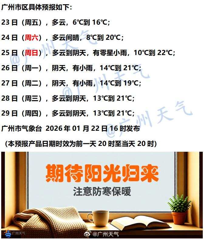 @广州天气预计,未来几天气温逐步回升,周五周六还有望见到阳光,周日多云到阴天,有零星小雨,晾晒要抓紧时间了。
