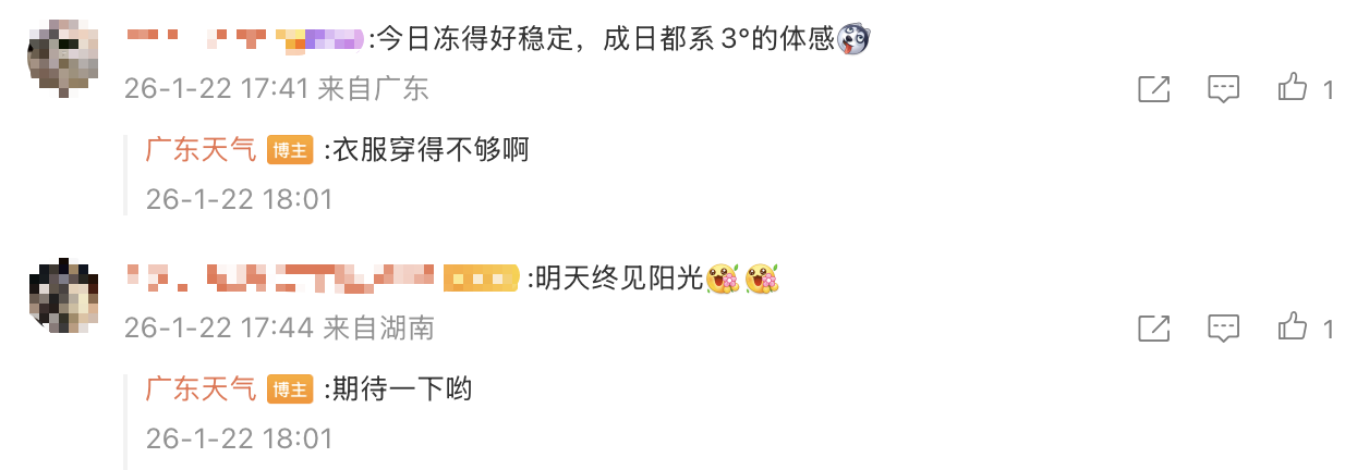 昨天,广东南部沿海部分市县有短暂阳光出没,但很快被南压云层盖住了,广东大部处在云层下方没有太阳加热,体感阴冷。
