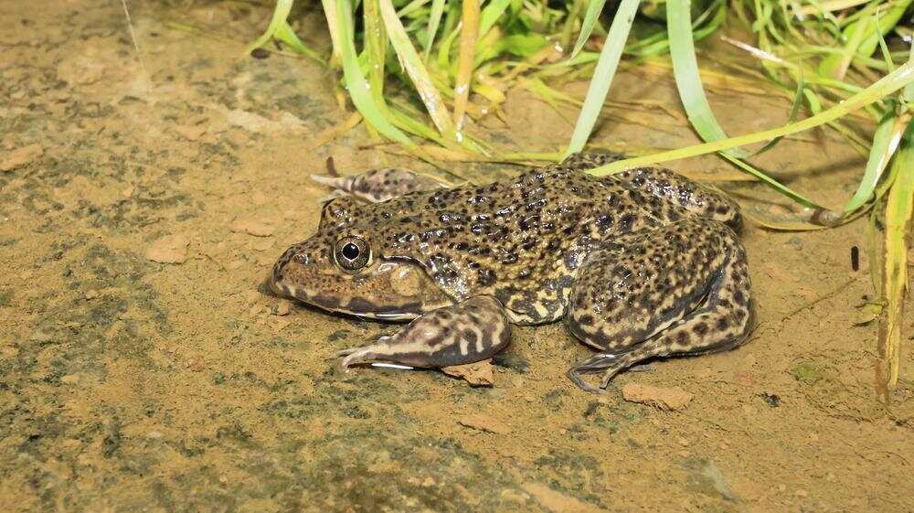 蛙科湍蛙属,趾端具吸盘,擅长攀附在急流岩石上,是典型的“激流专家”。
