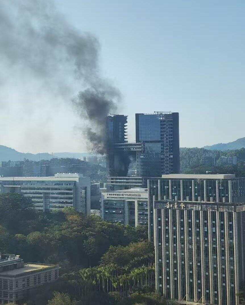1月11日下午,广州市黄埔区科学城科学大道沿线一在建高层建筑发生火灾。