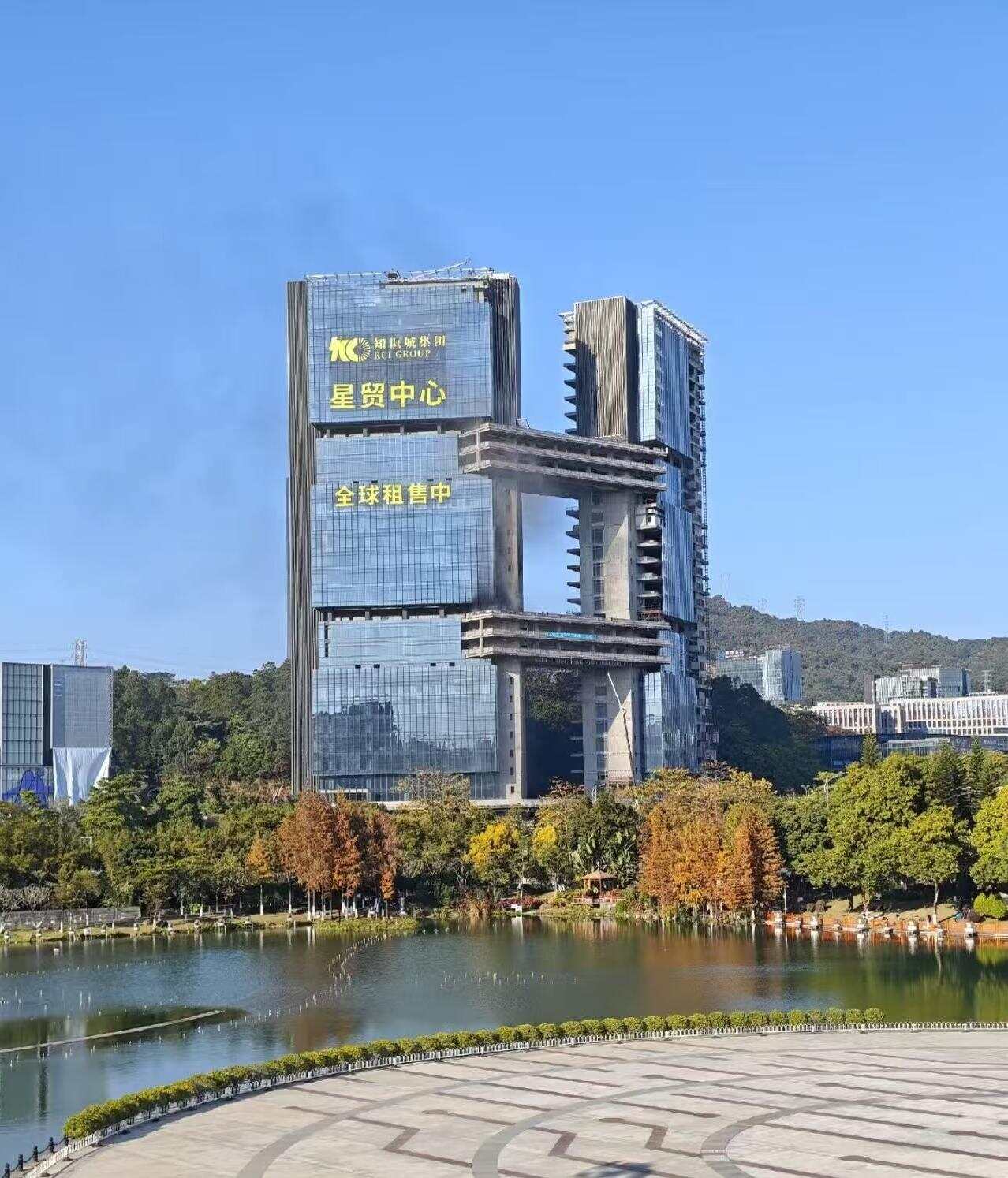 公开信息显示,知识城星贸中心为双子塔甲级写字楼,规划业态包括办公、公寓、酒店、商业等,建筑面积约23万平方米,已于2025年封顶,目前正处于幕墙挂装施工阶段。