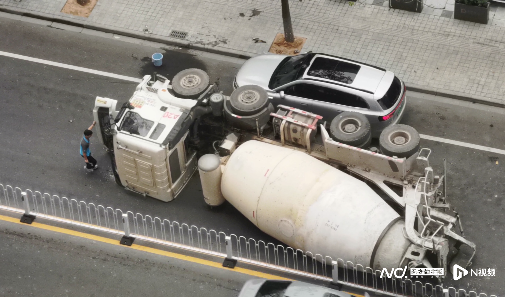 陈梦谋路遇侧翻搅拌车,破窗救出被困司机后悄然离去。受访者供图