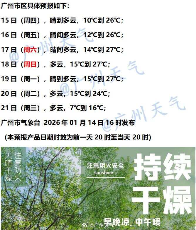预计未来七天,广州气温先升后降,下周又有新冷气到访。