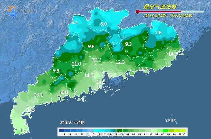 15日,南部沿海市县多云间阴天,其中粤东沿海市县有分散性零星小雨,其余大部市县晴天间多云。西江流域和粤西市县早晚有(轻)雾。最低气温:粤北市县7℃~9℃,南部沿海市县13℃~15℃,其余市县10℃~12℃。