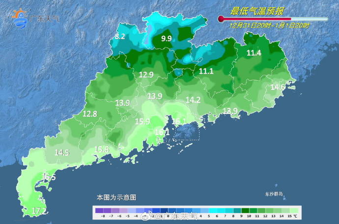 1月2日,全省大部多云到阴天转晴到多云。最低气温:粤北、珠三角北部市县4~8℃,其中高海拔山区-1~2℃,局部有冰冻或霜冻,粤西沿海市县12~15℃,其余市县9~11℃。