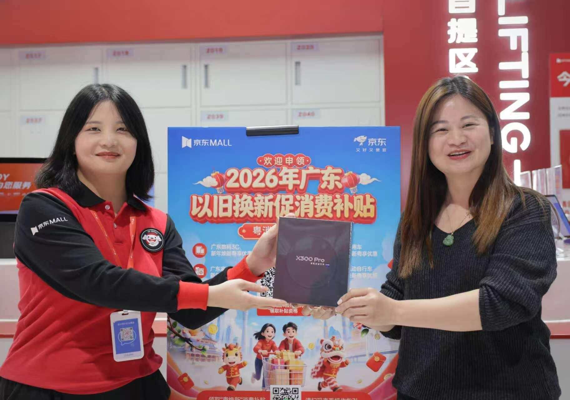 据广东省商务厅消息,广东省21个市均在1月1日启动2026年“国补”活动。记者了解到,首笔交易发生在广州京东MALL,为扩大新年促消费政策效果,该商场实行“跨年”营业。市民吴女士使用以旧换新补贴购买了一部vivo X300Pro智能手机,成为今年广东省首位通过该补贴政策完成交易的消费者,也是全国首个享受2026年“国补”的订单。