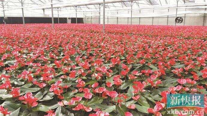 在位于从化的广州花卉研究中心,近200亩红掌正值最佳赏花时节,免费向市民开放。花卉中心每年持续研发多个红掌新品种,新技术市场占有率达90%,年示范带动农户600多家、规模化生产的花卉企业100多家,年推广示范带动社会效益超过2亿元。