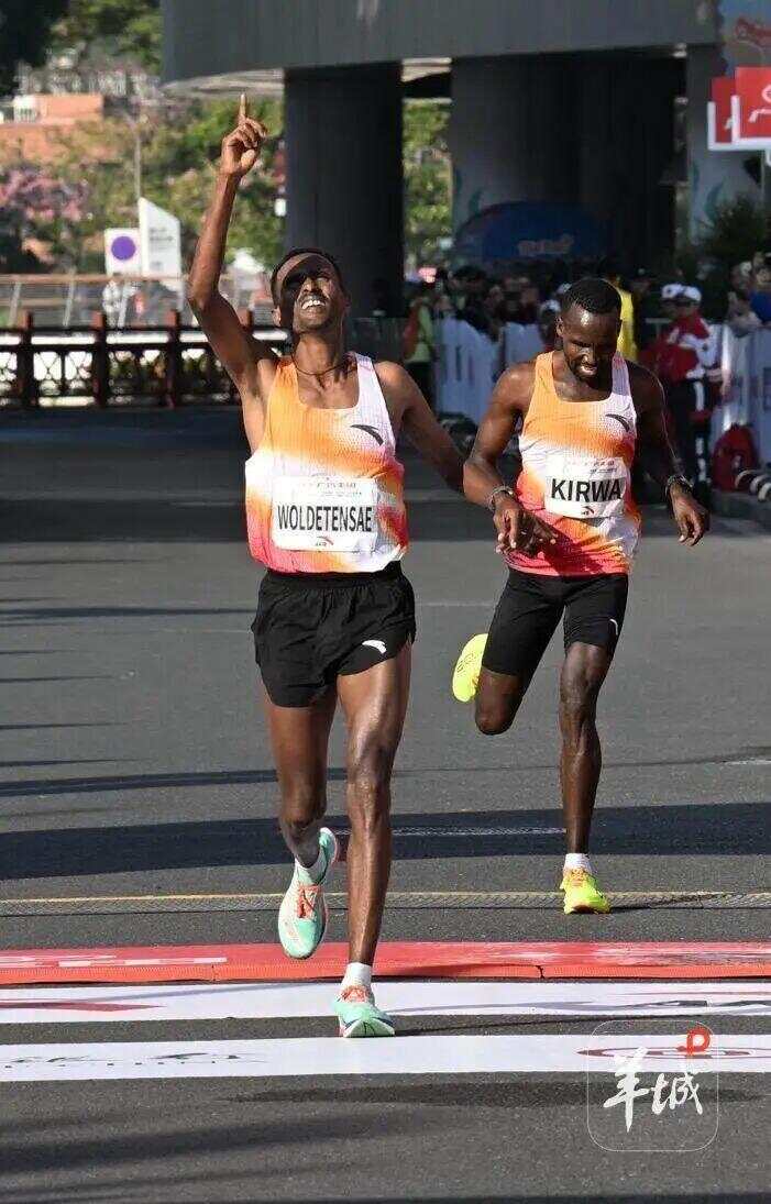 经过激烈的争夺,来自埃塞俄比亚的选手阿费沃克·梅斯芬·沃尔德腾萨耶以2小时12分23秒的成绩夺得男子组冠军。