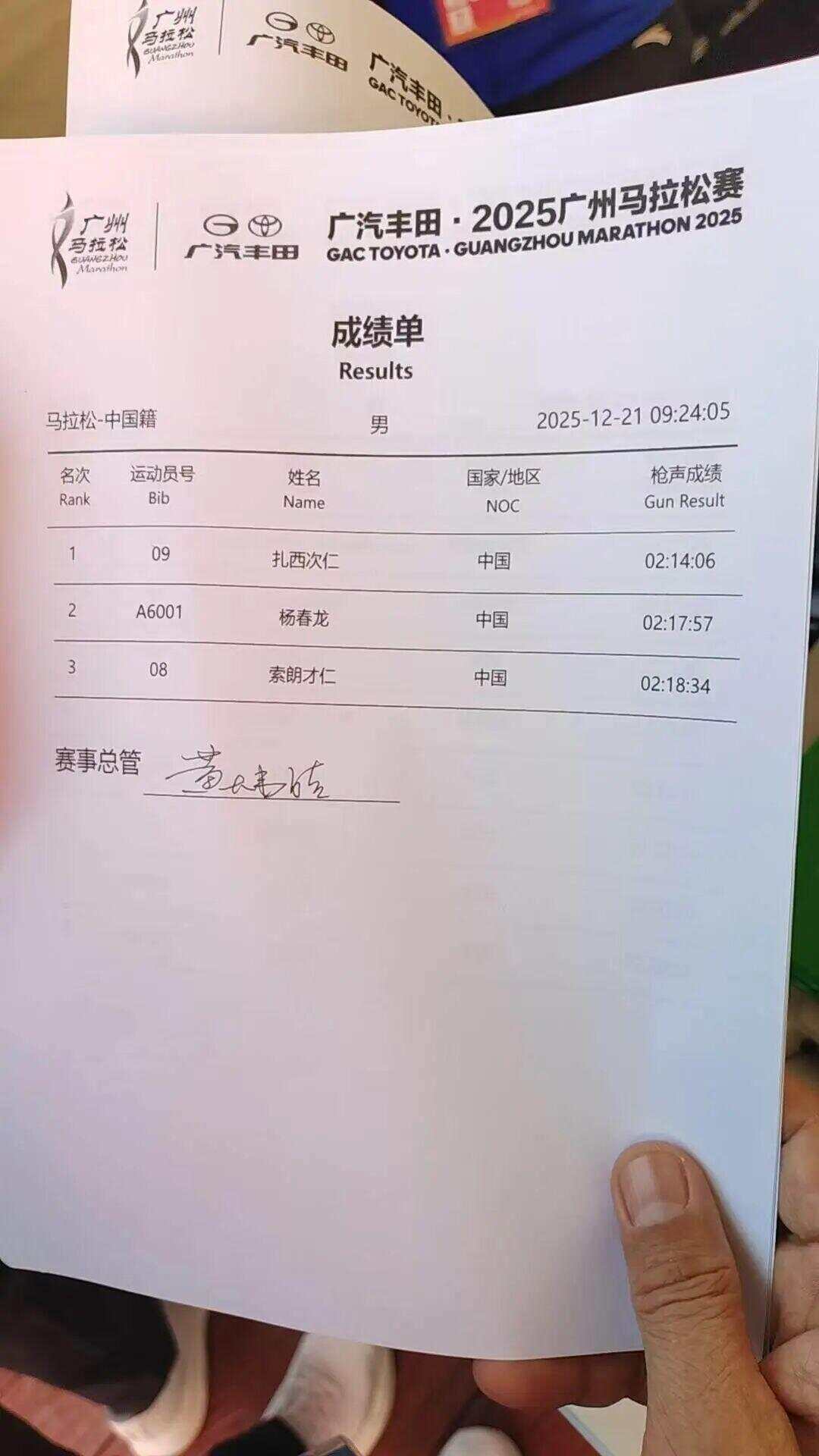 来自西藏的选手扎西次仁以2小时14分06秒的成绩排名第三,夺得国内男子组冠军。