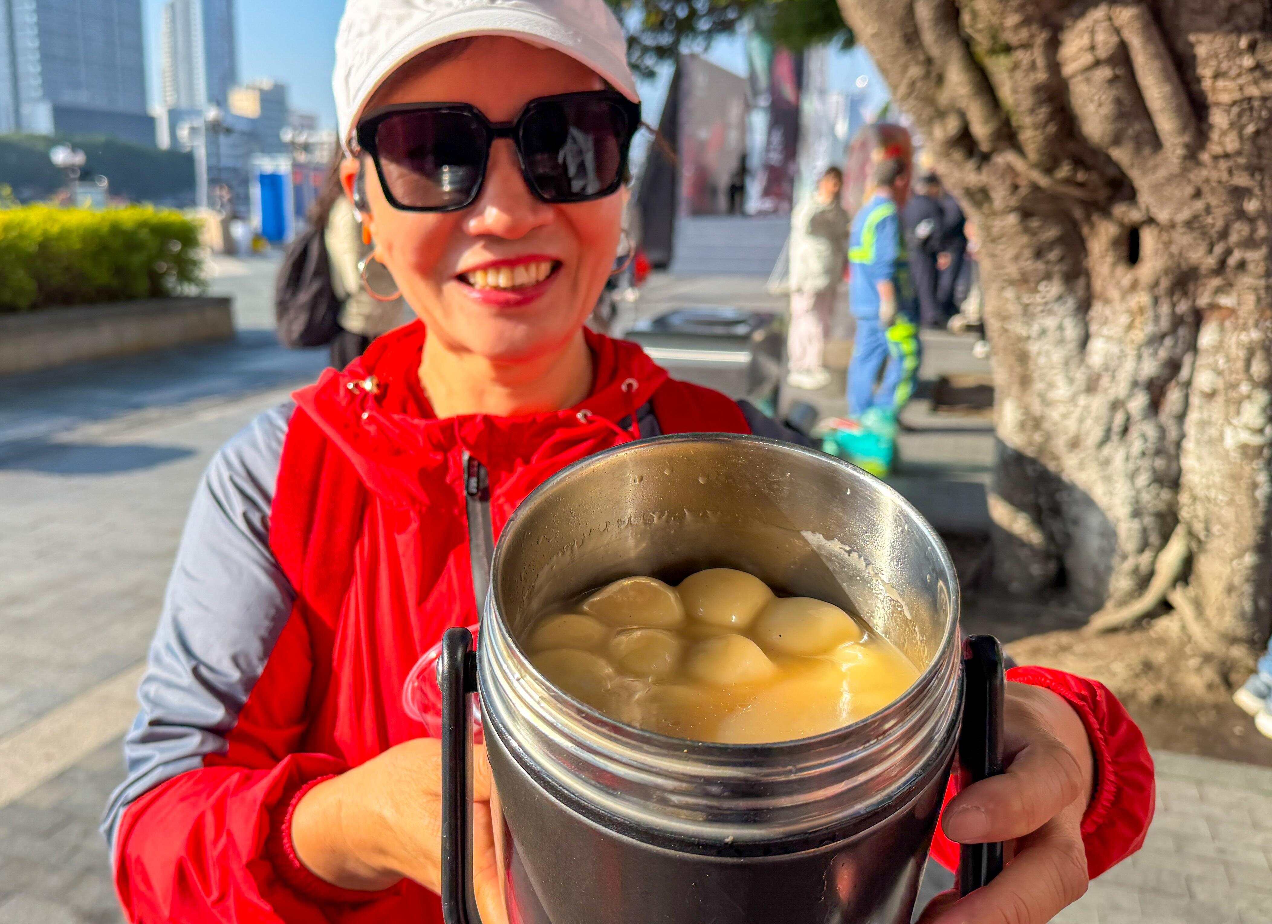 今年办赛恰逢冬至日,一些跑团甚至还准备了汤圆以契合这一特殊日子的特殊寓意。广州西湖粤跑团成员梁杏芯表示:“我们今天四点就起床煲汤、煮汤圆,希望跑团里参赛的十几个跑友们能够顶住高温天气,跑出好成绩。”