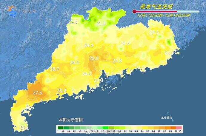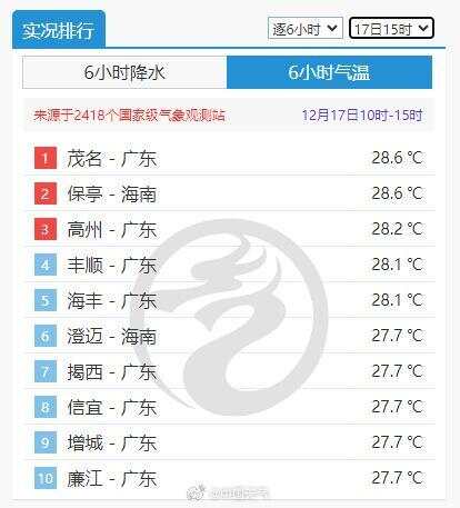 17日,全国高温榜广东和海南霸榜,作为全国较南的省份,12月还在穿短袖也是比较少见的。