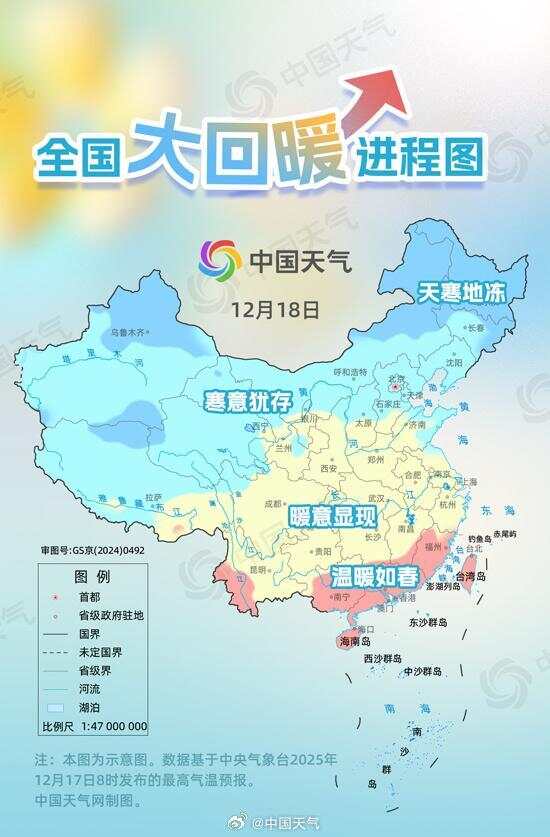 幸好我们并不孤单——未来几天,我国大部地区暖意继续升级,陕西、甘肃多地最高气温打破12月中旬纪录,暖得同期少见,江南不少地方也将暖到破纪录。