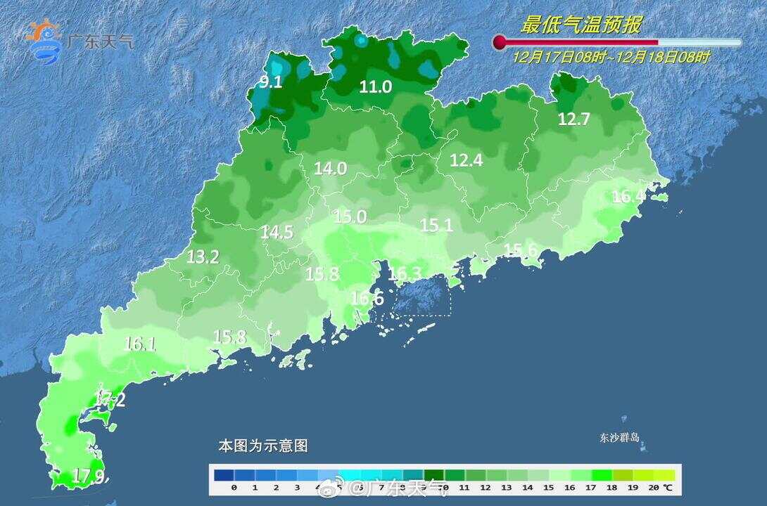预计,17-18日北方弱冷空气补充南下,广东气温小幅波动,广东大部多云为主,部分市县间中有零星小雨。19日受高空槽影响,广东中东部降水有所增多。