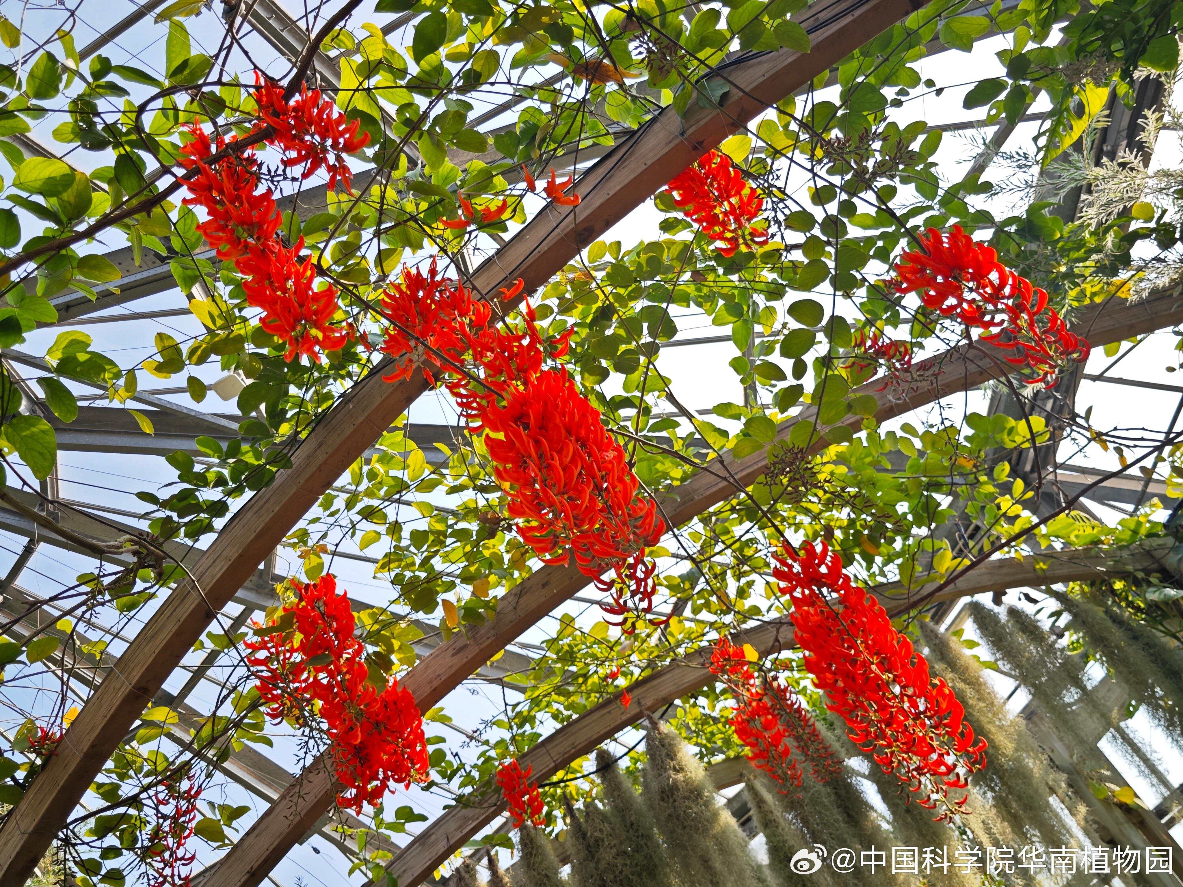 热着热着,华南国家植物园的红花油麻藤突然爆开了一串串烈火红焰!鲜艳的色彩正如12月广东不减的暖意。一睹为快↓↓↓