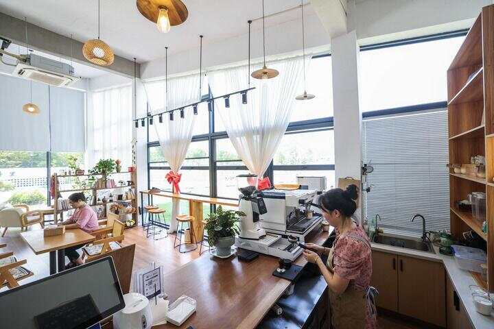 2025年8月27日在浙江省湖州市长兴县虹星桥镇宋高村稻香伴日营地内拍摄的咖啡屋。这是宋高村做优全域土地整治后的农文旅新尝试,集餐饮、旅游、农业和文化于一体。新华社记者 徐昱 摄