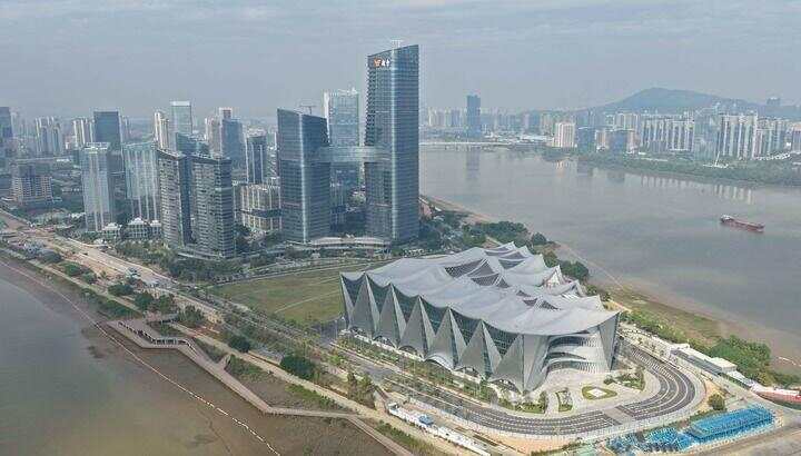 这是2025年12月11日拍摄的位于广州市南沙区明珠湾灵山岛尖的大湾区科学会堂(无人机照片)。新华社记者 邓华 摄