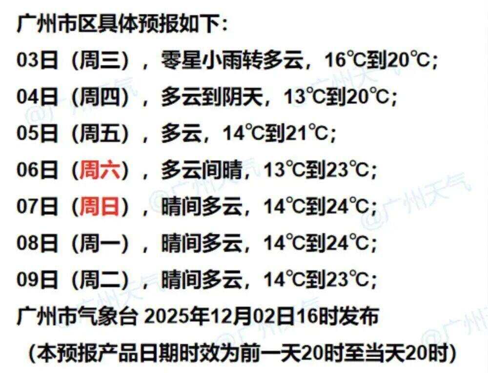 广州市气象台12月2日傍晚市区七天预报 图/@广州天气