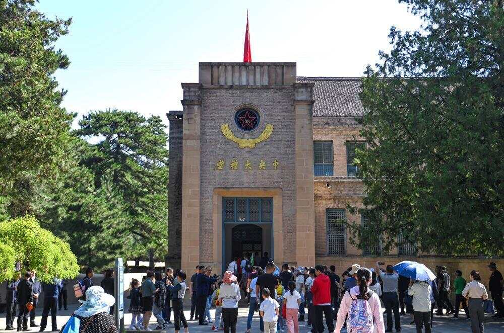2023年8月29日,在陕西延安,游客参观杨家岭革命旧址的中央大礼堂。近年来,延安市不断优化红色旅游产品供给,完善红色旅游教育常态化工作机制,推动文旅融合高质量发展。