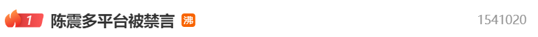 12月5日,“陈震多平台被禁言”相关话题词登上热搜第一。