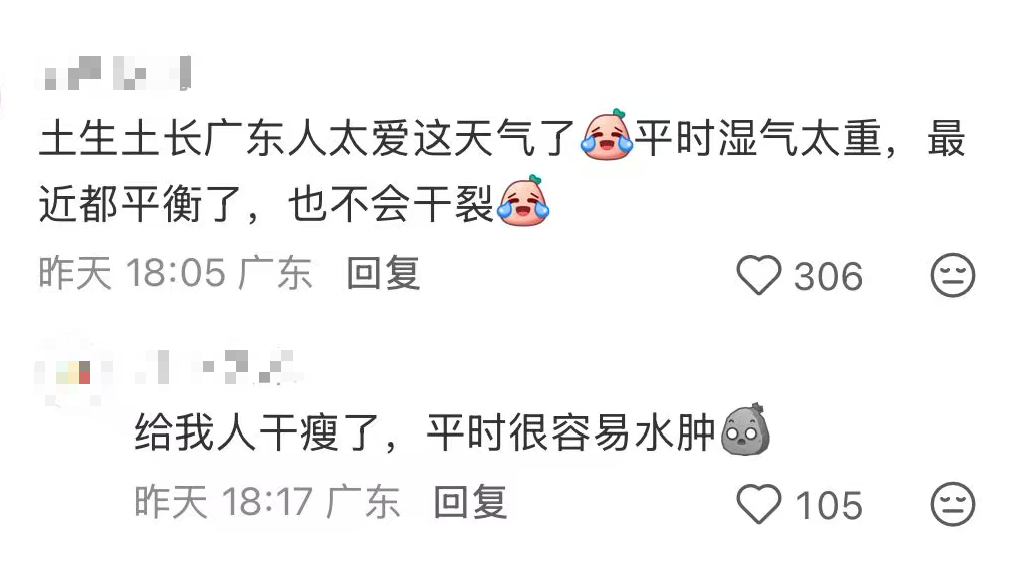 甚至有网友发出疑问:就从最近这干燥的天气来看,一时间真不知道广东是南方还是北方了......