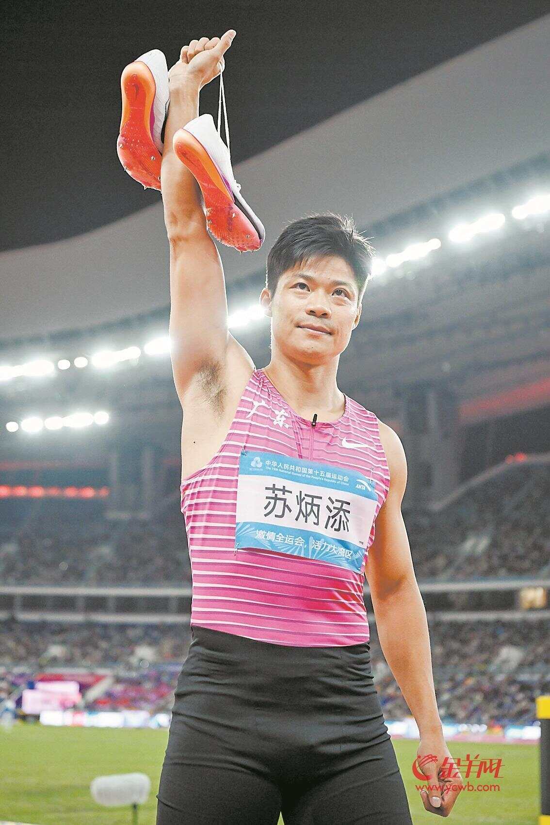 11月20日,十五运会田径项目在广东奥体中心上演收官战,在男子4×100米接力决赛中,由苏炳添、刘洪熙、施君豪和陈冠锋组成的广东队以38秒71的成绩,夺得第四名。赛后,在全场近5万名现场观众的欢呼声中,苏炳添绕场一周完成谢场,并脱掉战靴正式宣告“挂靴”。“苏神”的百米传奇,就此完美谢幕。