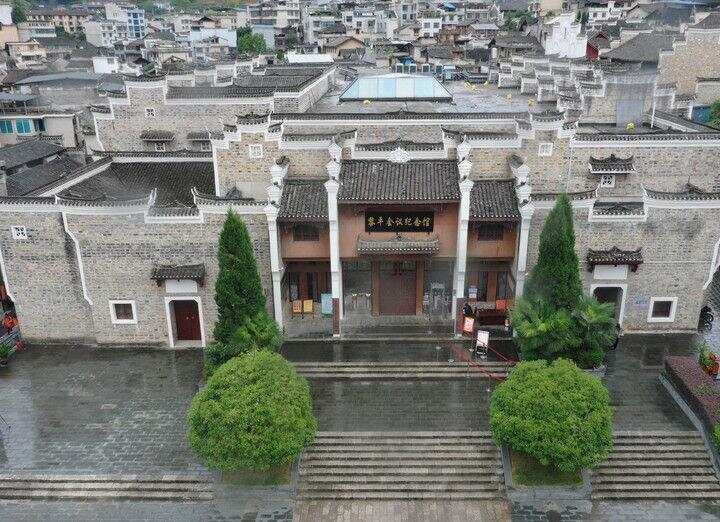 1934年12月15日,中央红军攻占入黔第一城——黎平城,在此召开了红军长征以来首次中共中央政治局会议。这是贵州省黔东南苗族侗族自治州黎平会议纪念馆(2021年10月15日摄,无人机照片)。