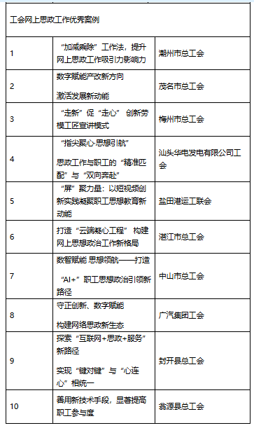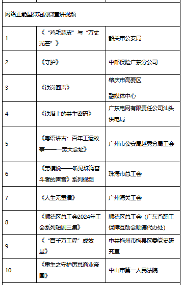 2025年“网聚职工正能量 争做南粤好网民”主题活动十佳作品名单