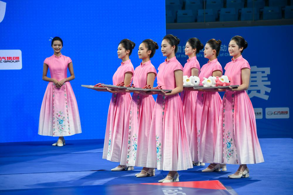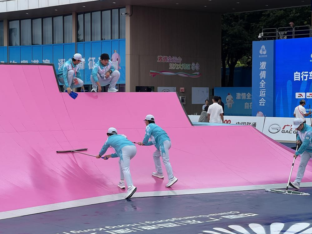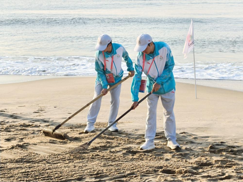 跨境赛事现场、小轮车赛场、排球馆、沙滩、颁奖台旁……哪里需要服务,哪里就会出现“小海豚”。他们沉稳协作的身影成为了全运会赛场上的坚实依靠。