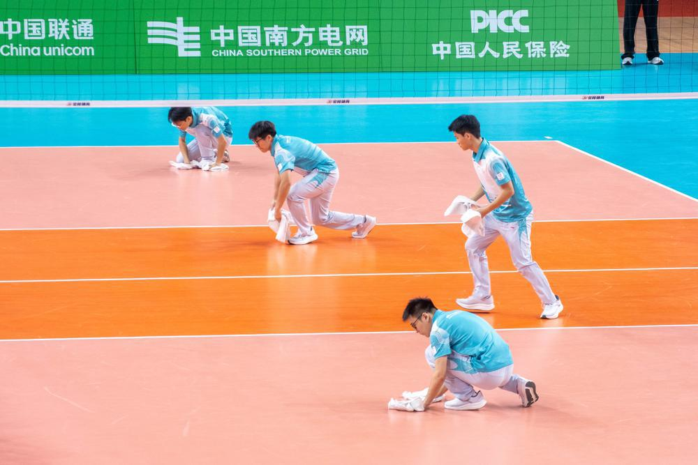 在U20男排比赛现场,FOP区域(Field of Play的缩写,指体育赛事中选手进行比赛的核心区域)的志愿者们以专业表现赢得了高度赞扬。本届大赛该项目裁判主任刘铁一这样评价:“志愿者积极主动、动作迅速。‘快擦手’这项服务最辛苦,但同学们做得非常棒。”而值得盛赞的,不只有排球场上的“小海豚”。