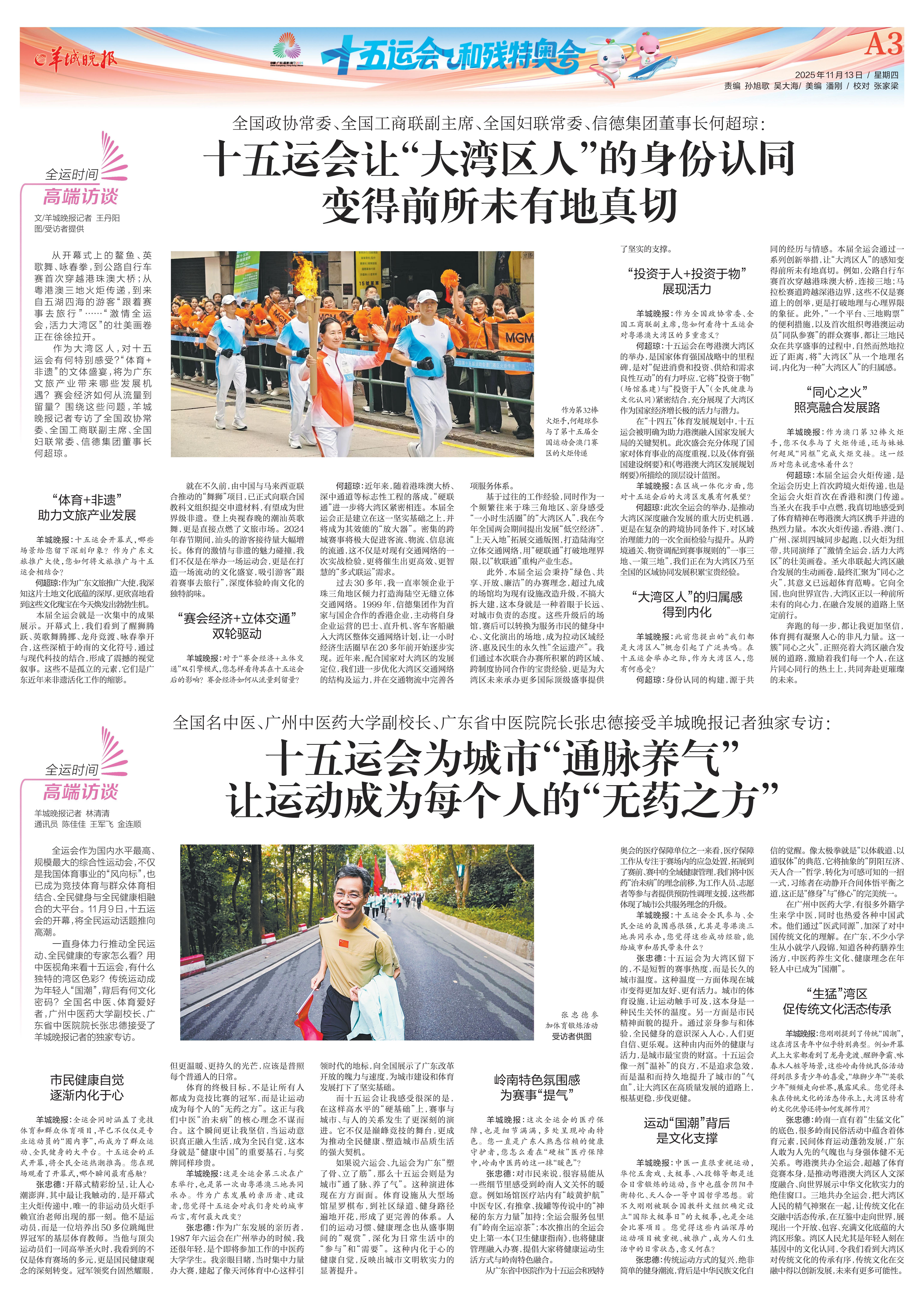 何超琼:此次全运会的举办,是推动大湾区深度融合发展的重大历史机遇,更是在复杂的跨境协同条件下,对区域治理能力的一次全面检验与提升。从跨境通关、物资调配到赛事规则的“一事三地、一策三地”,我们正在为大湾区乃至全国的区域协同发展积累宝贵经验。